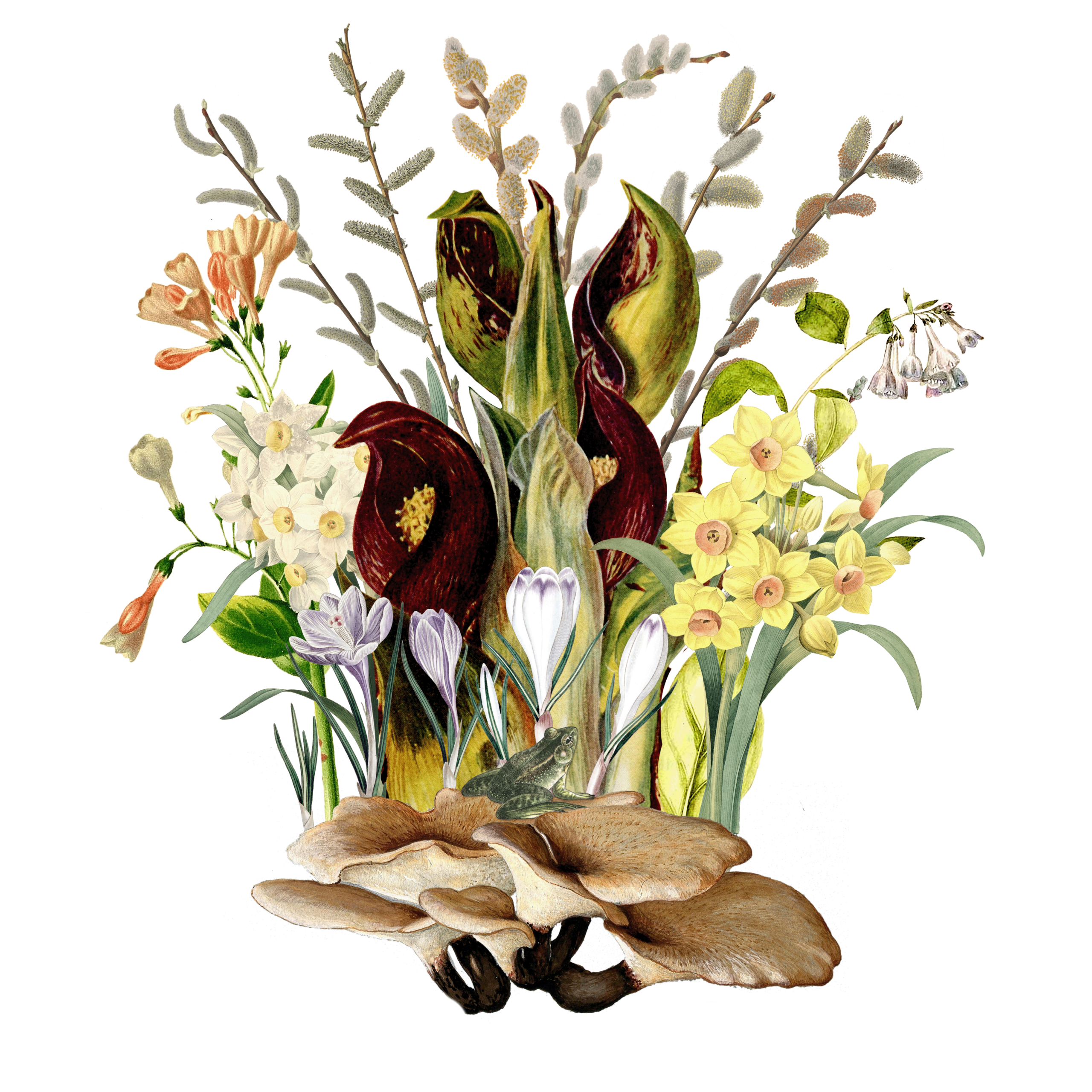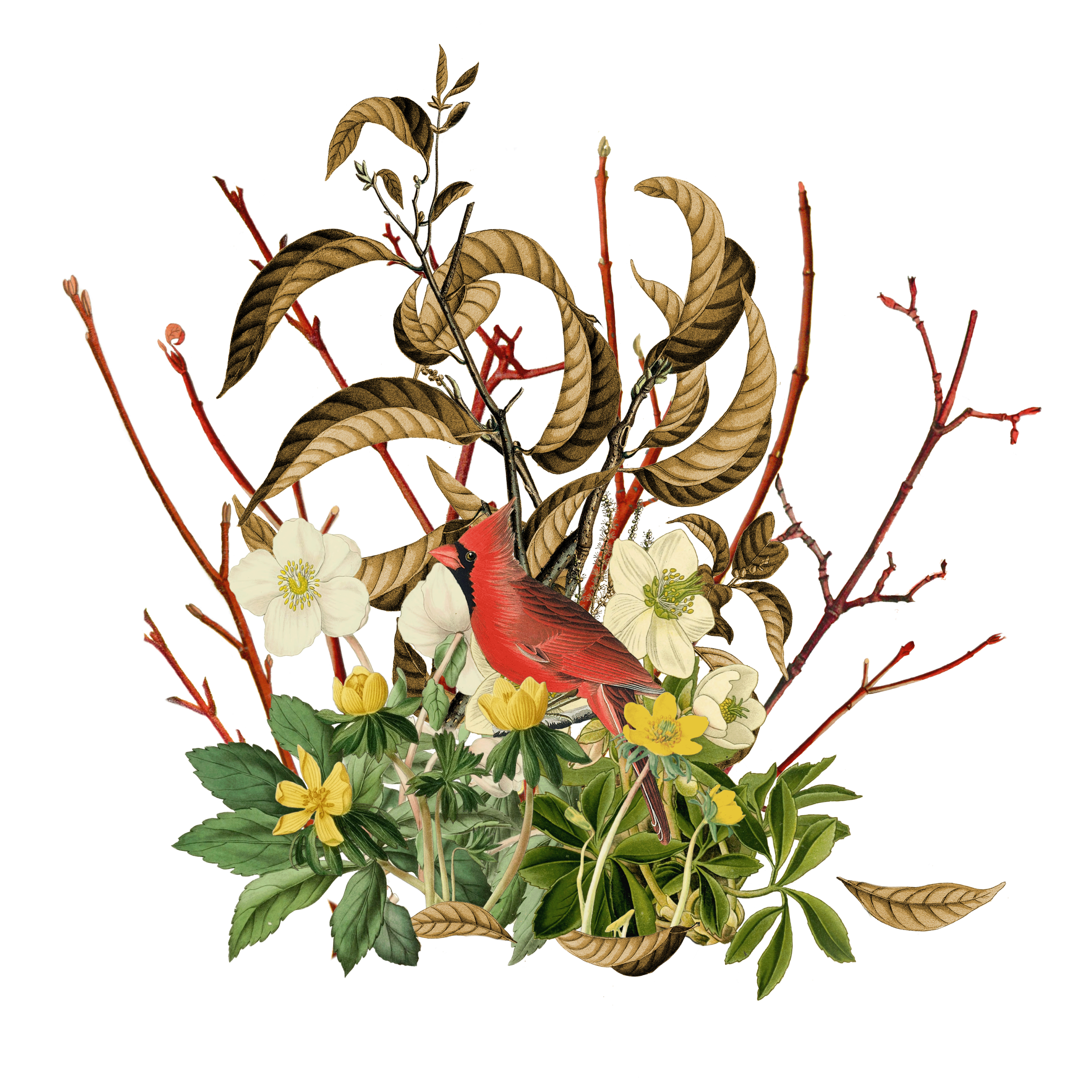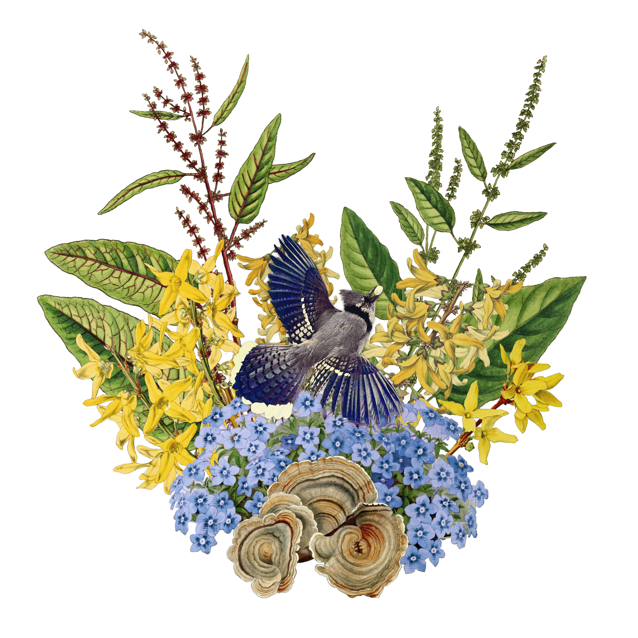Using photoshop, I isolated each plant and arranged them into collage-bouquets. Balancing color, form and illustration style was a wonderful challenge. Each month I pushed myself to create something cohesive, ecologically accurate and joyful.