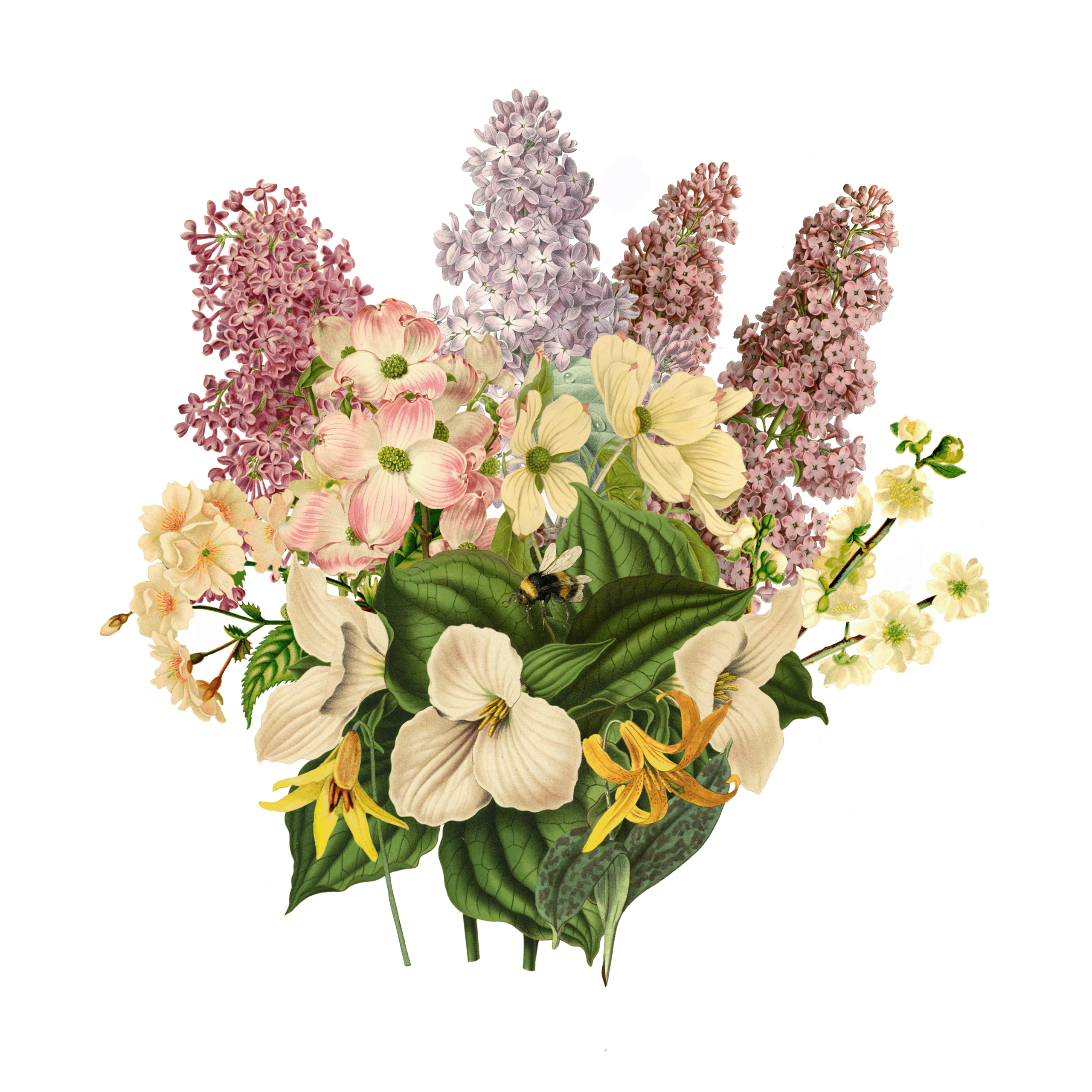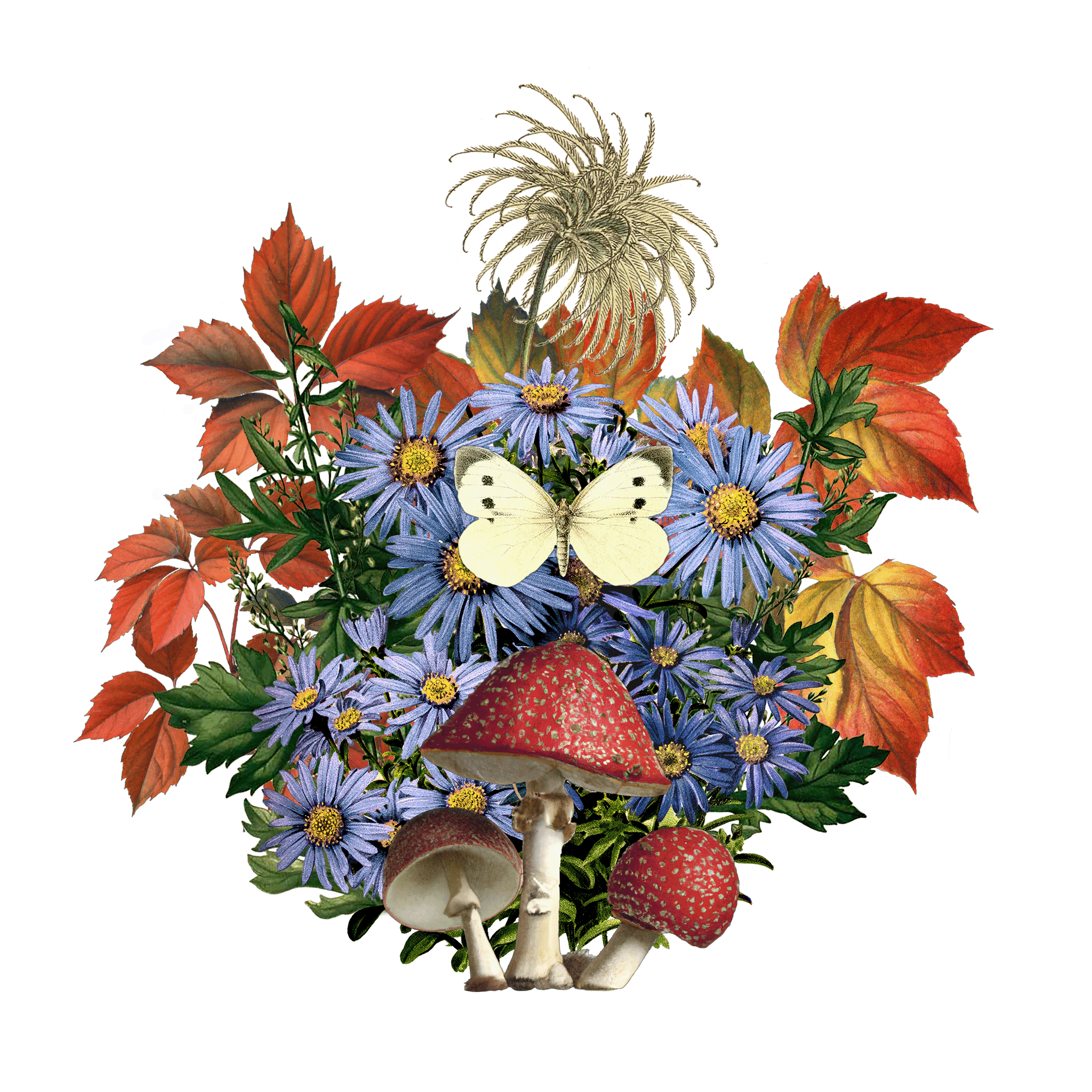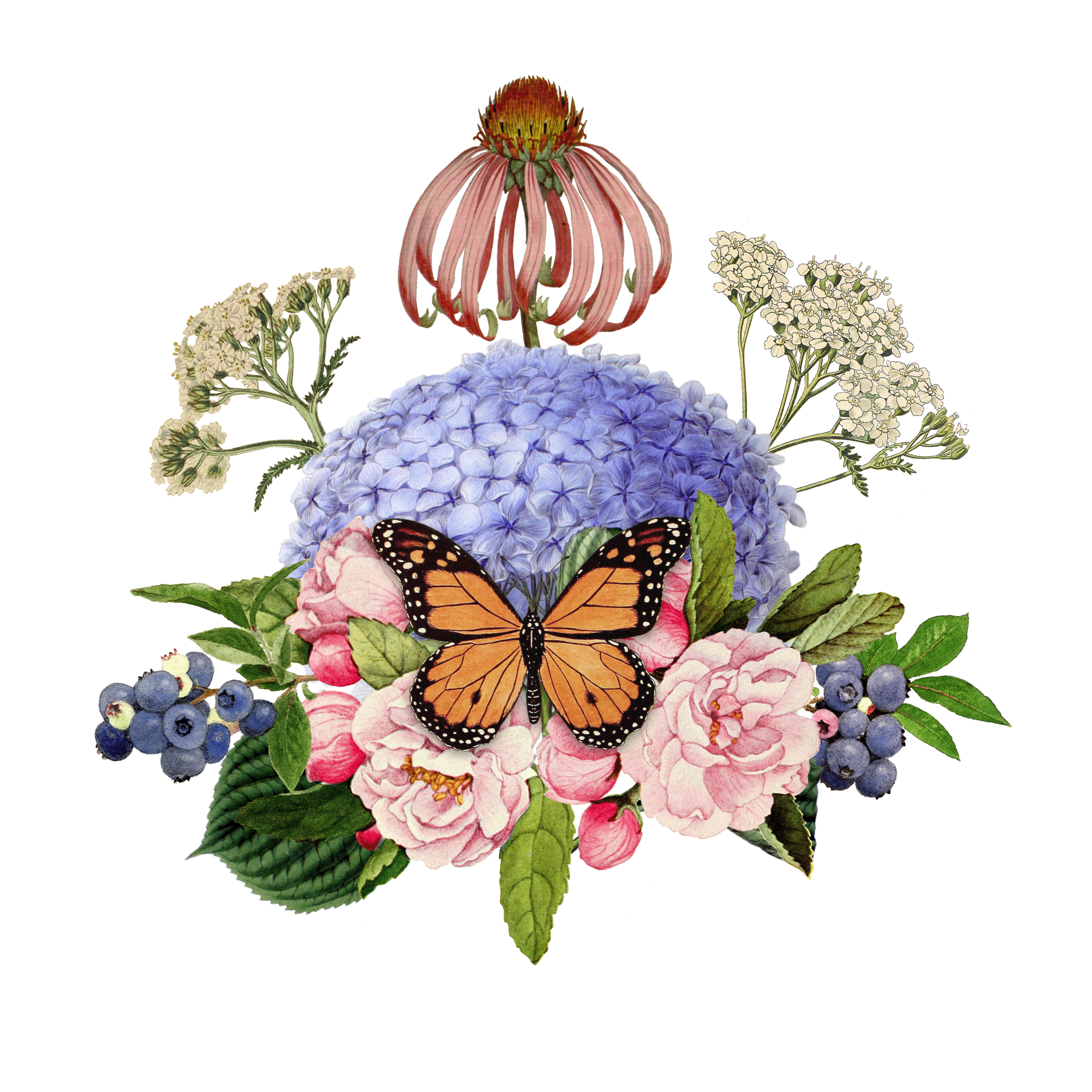 Using photoshop, I isolated each plant and arranged them into collage-bouquets. Balancing color, form and illustration style was a wonderful challenge. Each month I pushed myself to create something cohesive, ecologically accurate and joyful.