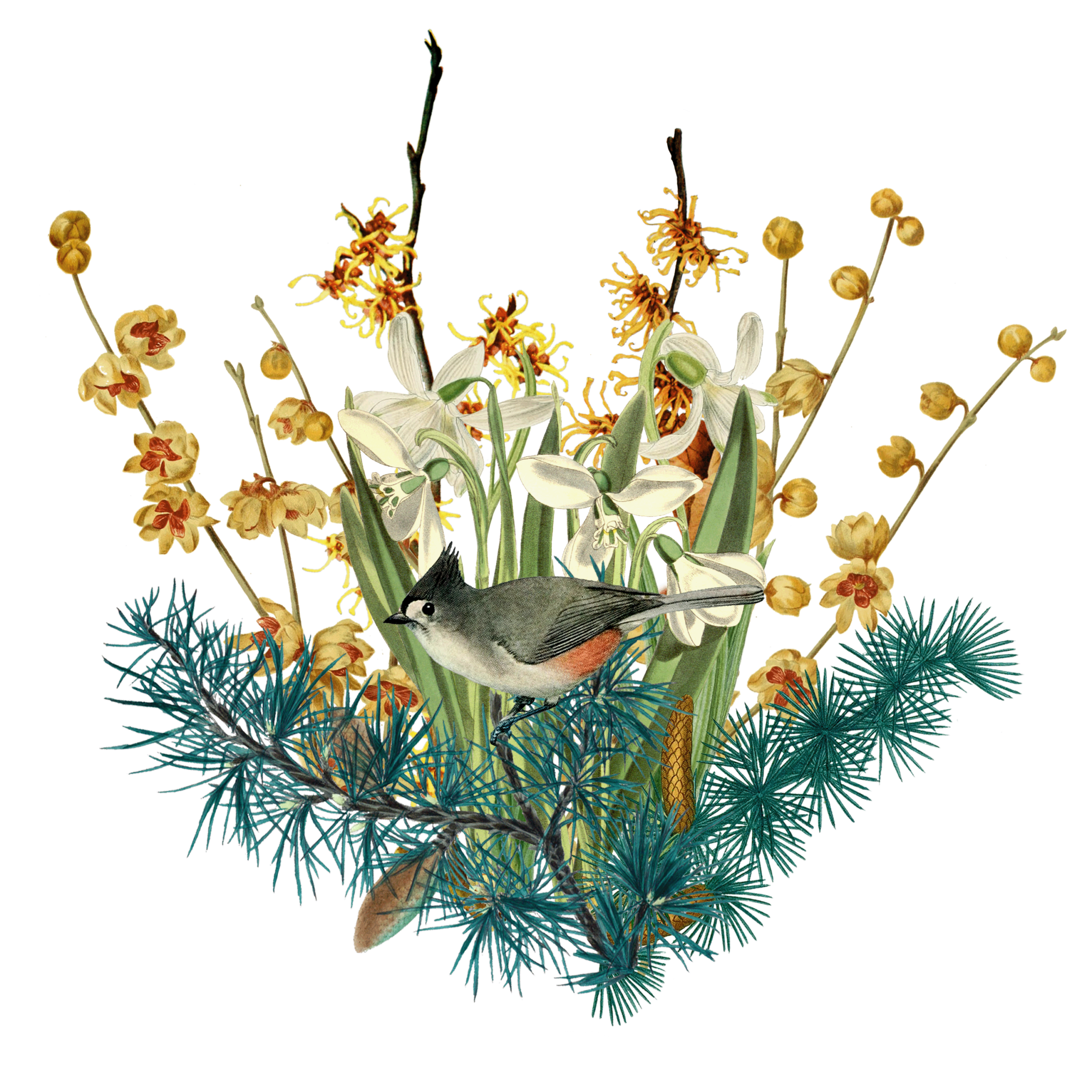 Each month, Fru and I sat down and made a list of the most striking and seasonally interesting plants that grew in our area. Based on that list, I gathered public domain botanical illustrations from the 18th and 19th century. I could not have done this without the incredible resource that is PlantIllustrations.org, and wikimedia.